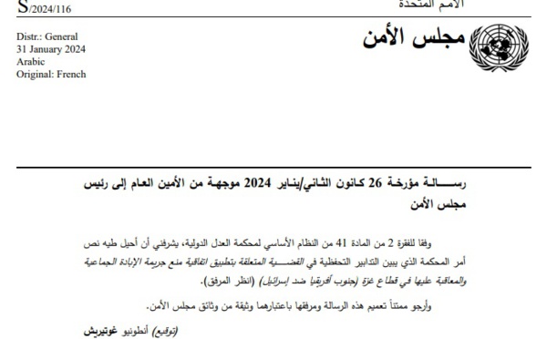 نص أمر محكمة العدل الدولية بشأن تطبيق إتفاقية منع جرائم الإبادة الجماعية في قطاع غزة