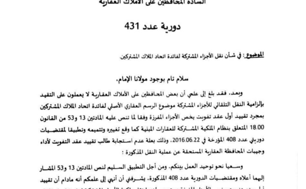 مذكرة المحافظ العام في شأن عقود البيع المنجزة لفائدة المستفيدين من إعانة الدولة لدعم السكن