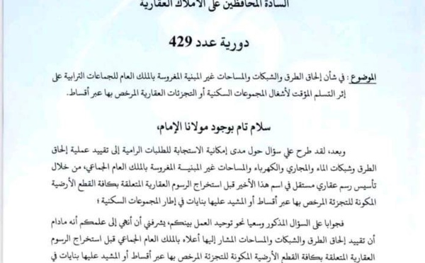 حول إلحاق عناصر البنية التحتية والمساحات غير المغروسة بالملك العام الجماعي - دورية بتاريخ 2023/7/14