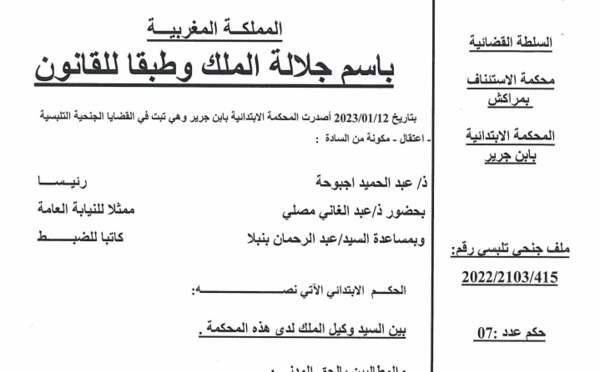 سبق: نسخة كاملة من الحكم الصادر في القضية المعروفة بالشاب المتوفى بمخفر بنجرير