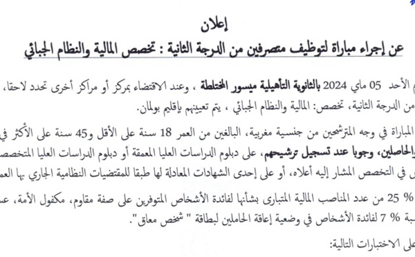 إعلان عن توظيف 3 متصرفين "تخصص المالية والنظام الجبائي" بوزارة الداخلية