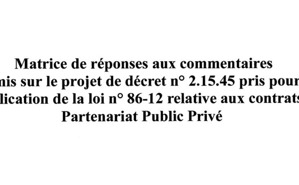 جواب وزارة الاقتصاد و المالية على التعاليق حول مسودة مشروع المرسوم التطبيقي المتعلق بتطبيق القانون المتعلق بعقود الشراكة بين القطاعين العام و الخاص ـ باللغة الفرنسية