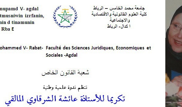 شعبة القانون الخاص بكلية العلوم القانونية والاقتصادية والاجتماعية اكدال – جامعة محمد الخامس – الرباط تنظم ندوة علمية وطنية تكريما للأستاذة عائشة الشرقاوي المالقي