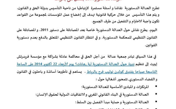 ندوة حول العدالة الدستورية أية رهانات؟ من تنظيم جمعية عدالة