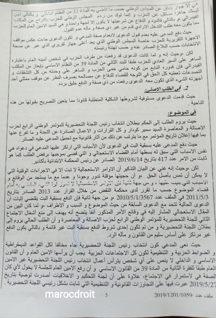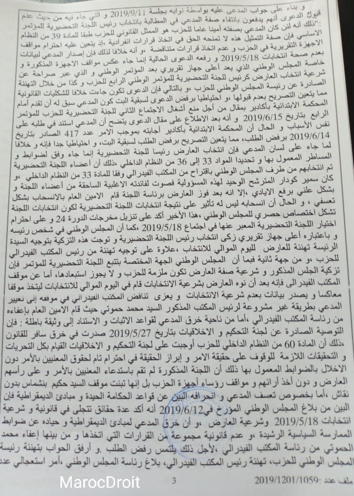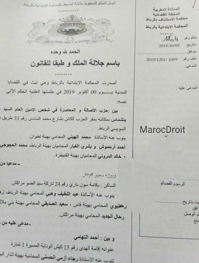 حصري: حزب الأصالة والمعاصرة _ حكم قضائي يقضي ببطلان إنتخاب رئيس اللجنة التحضيرية للمؤتمر الرابع للحزب وبطلان كل ما تمخض عنه من قرارات.