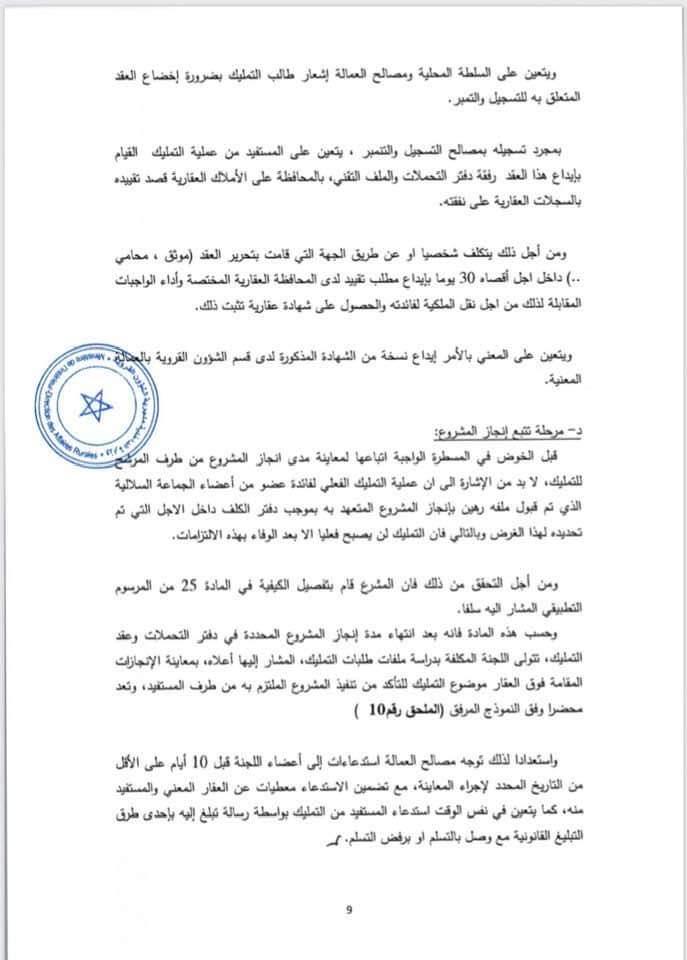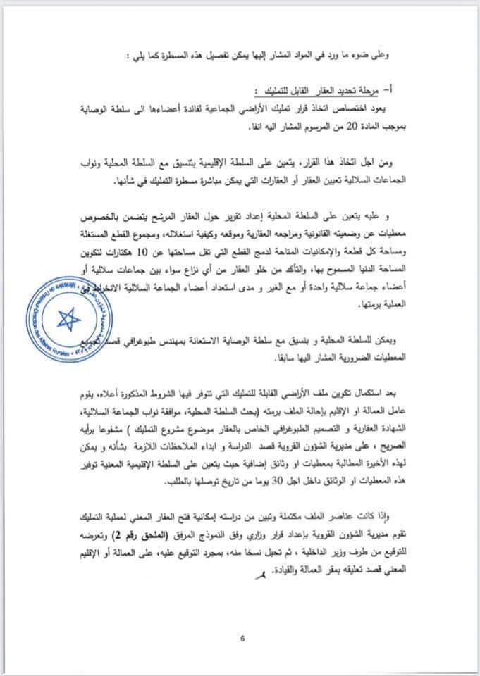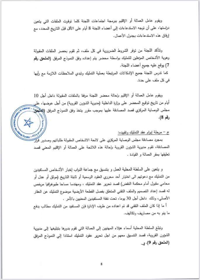 دورية وزير الداخلية بشأن تمليك قطع أرضية فلاحية بورية من أملاك الجماعات السلالية لفائدة المنتفعين بها من أعضاء هذه الجماعات.
