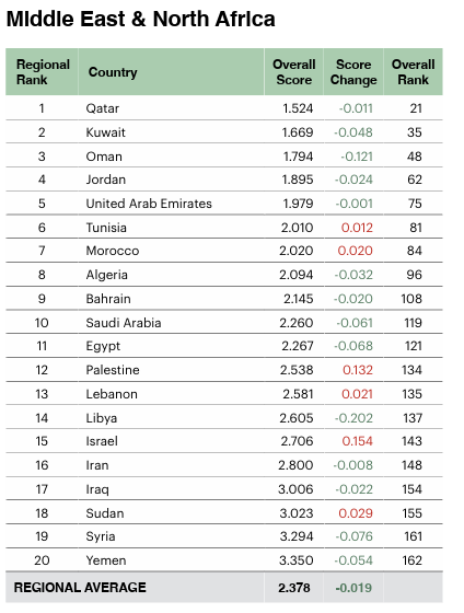 Morocco ranks 7th in Middle East & North Africa, 84th globally in new 2023 Global Peace Index